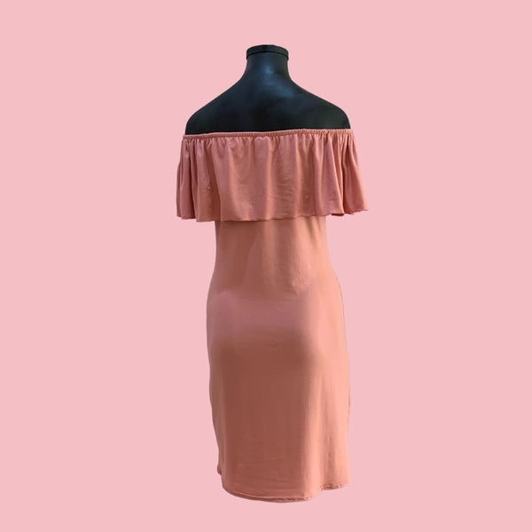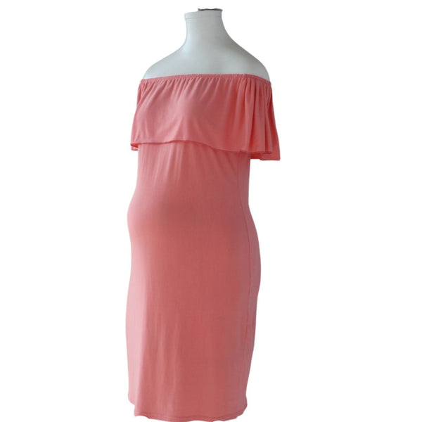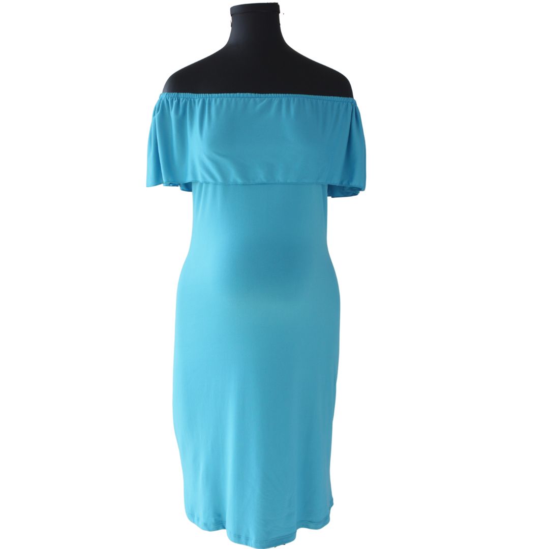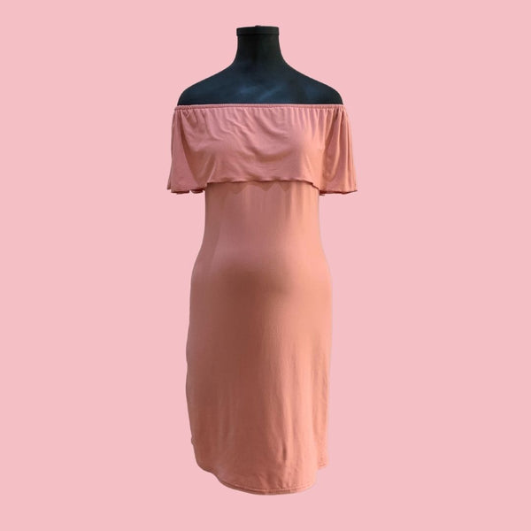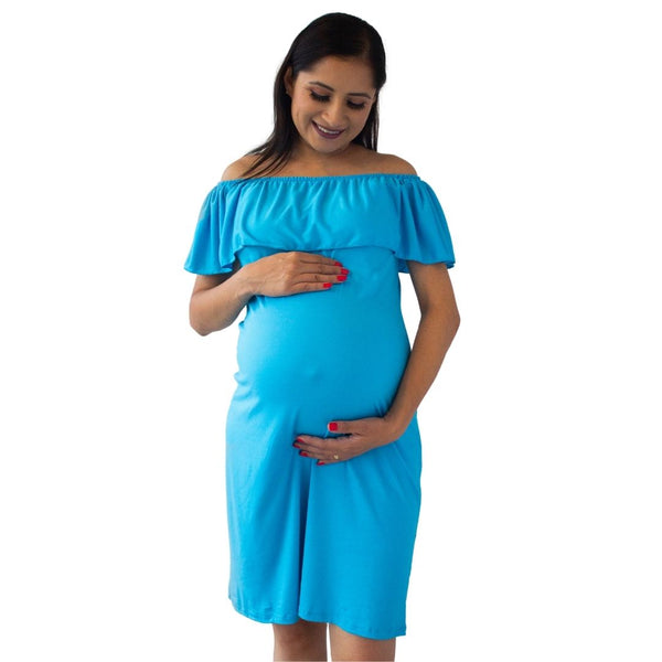 Vestido de Maternidad estilo campesina. Elaborado en tela Brush.