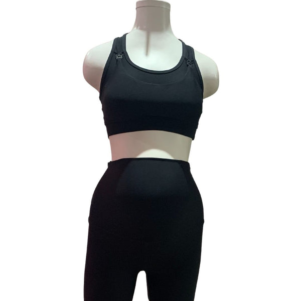 Para ejercitarte y alimentar cómodamente a tu bebé, este Sport Bra que cuenta con sistema de lactancia no puede faltar en tu guardarropa. Elaborado en tela de licra color negro cuenta con protección en copas.