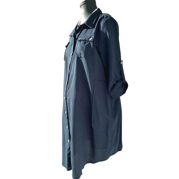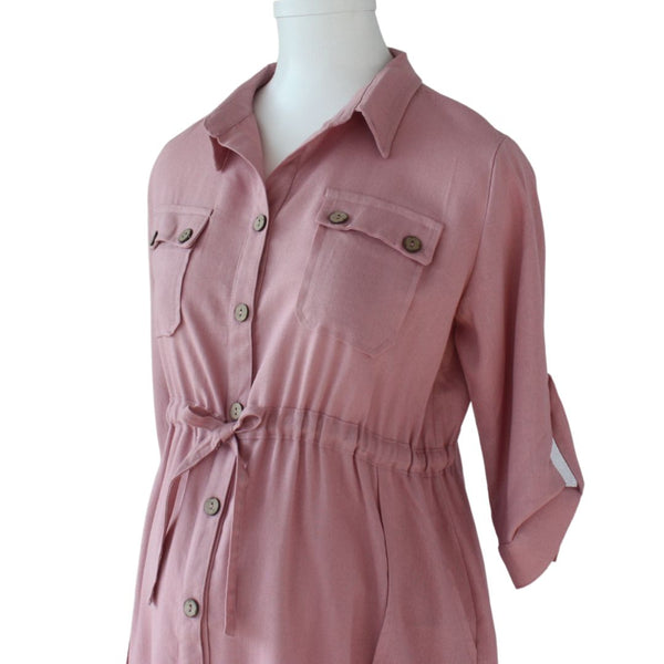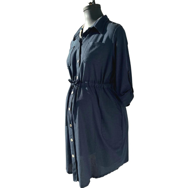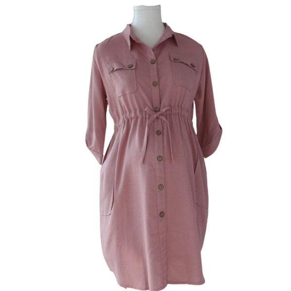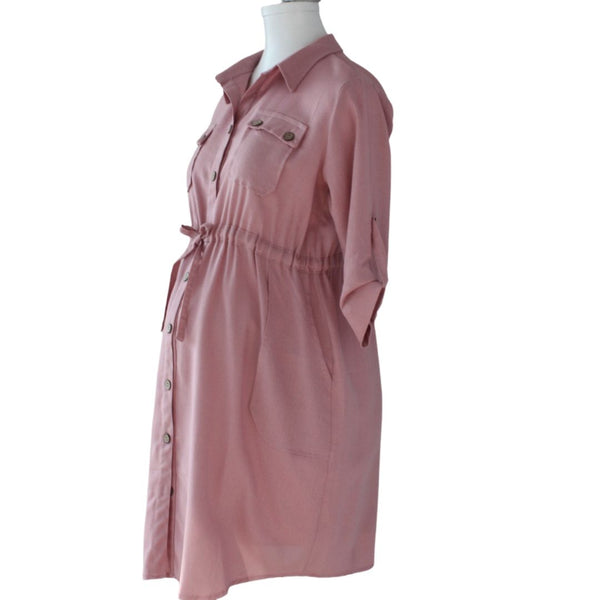 Disfruta tu embarazo siempre cómoda y a la moda, luciéndo este hermoso vestido de maternidad y lactancia estilo camisa manga 3/4.