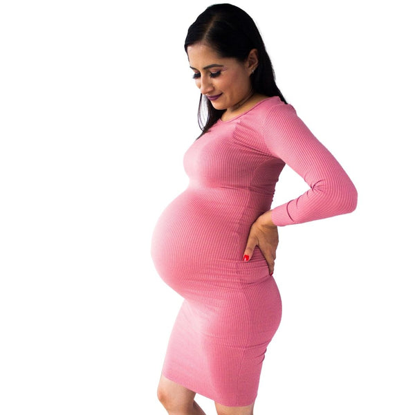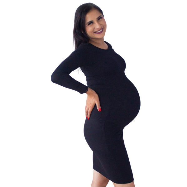 Cómoda en toda ocasión con este vestido de Maternidad ajustado tipo lápiz.
